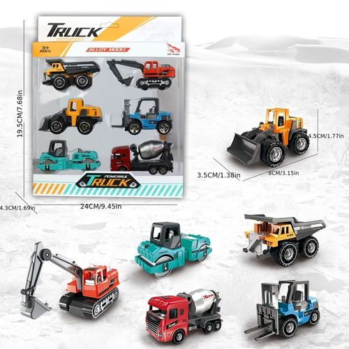 6pcs Alloy Engineering Vehicle Set ModelDie-Cast Alloy Metal Toy TrucksLoader Tractor Excavator ToysHoliday GiftChristmas GiftHalloween GiftPackaging Style Random